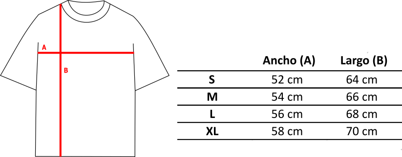 *Aquestes mesures corresponen a la resta de models de samarreta. Tingues en compte que són dissenys oversize